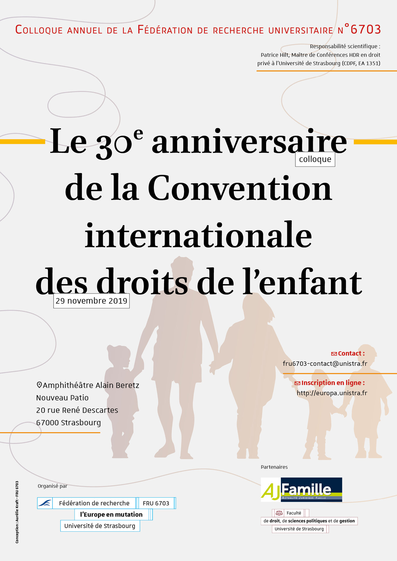 Le 30e anniversaire de la Convention internationale des droits de l’enfant Vendredi 29 novembre 2019Responsable scientifique : Patrice HiltTéléchargez le programme du colloque en version PDF (436Ko)Inscription en ligne