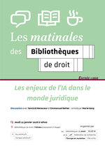 "Les Matinales" se dérouleront les mardis de 9h30 à 11h30 au sein de la bibliothèque de recherche juridique à raison d'une matinale tous les deux mois. L’entrée sera libre et la bibliothèque restera ouverte.